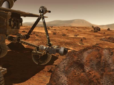 ![]() Il Rover mentre utilizza il Rock Abrasion Tool (RAT) |