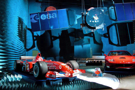 A bordo della navicella, in una sfera di vetro di due cm, anche un campione della pittura “Rosso Corsa” donata dalla Ferrari per siglare un sodalizio fra la casa di Maranello che ha vinto il campionato costruttori 2002 con Michael Schumacher, al suo quinto titolo mondiale piloti.In questa immagine un modello a grandezza naturale della navicella Mars Express, fotografata accanto alla Ferrari F2002, che ha vinto il campionato costruttori (e mondiale piloti con Michael Schumacher) ed alla Ferrari 575M Maranello. Mars Express porterà con sé nello spazio ed intorno a Marte un campione della vernice "Rosso Corsa", utilizzata su tutte le Formule uno della casa modenese, quale simbolo di successo della Ferrari e benaugurale per l’intera missione.